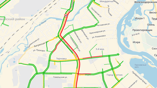 По данным сервиса Яндекс.Карты, утром из-за сложных метеоусловий на дорогах Пензы образовались пробки. На въезде в город движение затруднено на Транспортной улице. Также затор образовался на пересечении улицы Измайлова и улицы Антонова – средняя скорость движения транспортного потока на этом участке не превышает 7 км/ч. Из-за дорожно-транспортного происшествия образовалась большая пробка на улице Терновского в направлении центра города. Затор растянулся более чем на 2 километра, а средняя скорость движения составляет 7 км/ч. Также сильно затруднено движение и на прилегающих улицах – Петровской, Сухумской и Ростовской. В центре города затор образовался на пересечении улицы Суворова и Толстовского путепровода. Испытывают трудности автомобилисты в районе Центрального рынка. Серьезная пробка скопилась на улице Гагарина при движении в сторону выезда из города. Затор начинается от пересечения с проездом Байдукова, а средняя скорость движения не превышает 10 км/ч. Немного затруднено движение на пересечении улицы Карпинского и проспекта Победы.