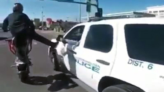 Видео: Лихач-мотоциклист оригинально дал пять полицейскому