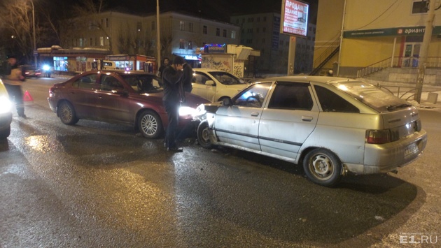 Авария с участием трёх легковушек случилась вечером на перекрёстке 8 Марта — Большакова. По словам очевидцев, водитель Renault Logan двигался по 8 Марта со стороны центра и намеревался повернуть налево, на улицу Большакова. В этот момент в его автомобиль влетел ВАЗ-2112, который ехал по 8 Марта со стороны Южного Автовокзала. Renault от удара развернуло, а разбитая «двенадцатая» по инерции въехала ещё в стоящую рядом Volvo. Никто из людей в дорожном инциденте не получил тяжелых травм. Водителя Renault спасла сработавшая подушка безопасности. — На место аварии подъехали автоинспекторы. Стали составлять схему ДТП. При этом никто из участников аварии не стал признавать свою вину, — рассказал один из свидетелей. Если вы стали очевидцем ДТП или сняли его на видеорегистратор, пишите нам на почту news@corp.e1.ru. Также можно воспользоваться WhatsApp и Viber — их номер +7 909 704 57 70.