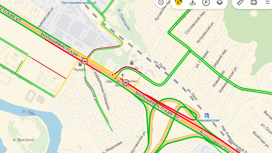 Утром 13 марта на улице Большевистской в Новосибирске недалеко от развязки с Бугринским мостом случилась авария и сломался КАМАЗ — эти происшествия затруднили проезд в обе стороны. По информации пользователей Яндекс.Карт, авария произошла не позже 8:22 в районе пересечения с улицей Инюшенской в среднем ряду в сторону Бердского шоссе. Ещё раньше на встречной полосе возле церкви Архангела Михаила сломался КАМАЗ, пробка в этих местах сохраняется до сих пор. Скорость потока упала до 10 км/час.