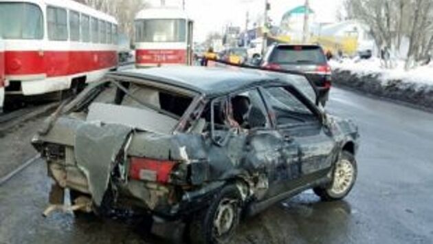В Самаре ВАЗ 2114 столкнулся с машиной ГИБДД, Land Cruiser и двумя трамваям