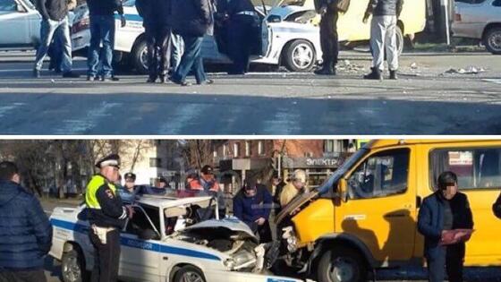 В Майкопе патрульный автомобиль ДПС столкнулся с маршруткой