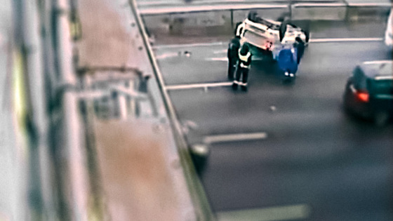 ДТП с перевернувшейся легковушкой на МКАД попало на видео