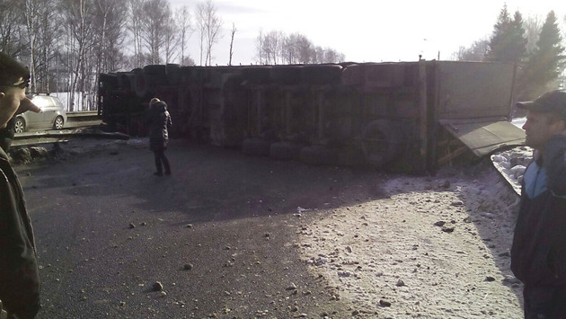 Фото из группы "Подслушано автомобилистов | Владимир" соцсети "Вконтакте" Сегодня утром на федеральной трассе М-7 «Волга» сразу же после Вязников фура совершила опрокидывание, упала на бок и перегородила всю проезжую часть. Объехать затор можно через населенные пункты Пирово, Городищи и Илевники. Как сообщают очевидцы аварии в паблике «Подслушано Автомобилистов Владимир», водитель большегруза не заметил выезжавший со второстепенной дороги трактор, попытался уйти от столкновения и допустил опрокидывание на бок. В настоящий момент в сторону Москвы движение идет по одной полосе. В сторону Нижнего Новгорода – движение перекрыто. Как сообщает Упрдор, о состоянии проезда водителей проинформируют по 15 радиоканалу УКВ-диапазона.