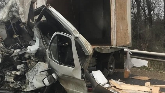 На Кубани «Газель» с досками врезалась в большегруз (видео)