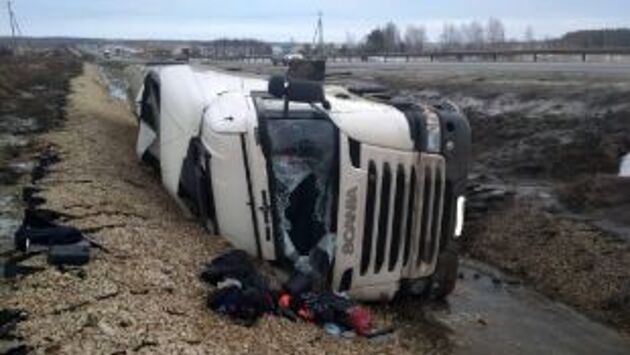На рязанской трассе фура вылетела в кювет и перевернулась