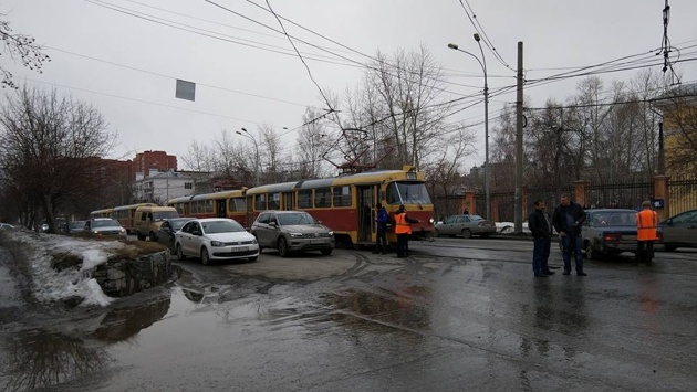 Сегодня возле парка Маяковского встали трамваи. Движение заблокировало ДТП на путях. Как рассказала Е1.RU читательница Наталья, вагоны стоят в обоих направлениях, скопилось уже 4 трамвая в одну сторону и 3 в другую. — Всех пассажиров высадили. Столкнулись «шестерка» и иномарка, сейчас ждут ГИБДД, — сказала она. Если вы стали очевидцем этого или другого происшествия, сделали фото или видео, сообщите нам на почту news@corp.e1.ru или по телефону +7 (343) 34-555-34. Также можно воспользоваться WhatsApp и Viber — их номер +7 909 704 57 70.
