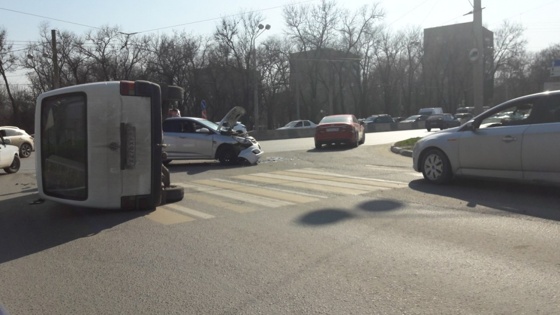 Сегодня, пятого апреля, на пересечении проспекта Стачки и улицы Тружеников произошло ДТП с участием Volkswagen Transporter и Hyundai Solaris. Водитель «Фольксвагена» ехал по Стачки и собирался повернуть налево. «Хендай» двигался по встречной полосе. На перекрестке машины столкнулись. Лобовой удар был такой силы, что «Фольксваген» отлетел в сторону на пару метров и перевернулся на бок. — Никто из участников аварии не пострадал, — сказали в пресс-службе ГИБДД по Ростовской области. Никто из водителей не признает вину. Оба мужчины уверяют, что ехали на зеленый сигнал светофора. Выяснить, кто же из участников аварии нарушил ПДД, поможет экспертиза, которую назначили полицейские.