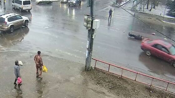 Переходившая дорогу на зеленый сигнал светофора жительница Рыбинска угодила под колеса легковушки, владелец которой попросту не заметил женщину из-за боковой стойки автомобиля. ДТП зафиксировала камера наблюдения. Авария произошла около 17:50 в минувший вторник, 10 апреля, на углу проспекта Серова и улицы Бабушкина. И 39-летняя женщина, и водитель двигались на зеленый сигнал светофора, однако владелец Mazda должен был уступить дорогу пешеходу, но при повороте налево не заметил его. Более того, за пару секунд до столкновения водитель прибавил скорость, рассчитывая проскочить перед другими людьми. От удара женщину отбросило в сторону, ударившись об асфальт, она потеряла сознание. На помощь ей пришли очевидцы аварии и сам водитель. В больницу пострадавшую доставили на скорой, но вскоре отпустили домой — обошлось без серьезных травм.