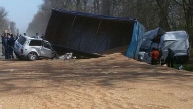 Один человек погиб в результате ДТП на трассе в республике Адыгея. Аварию спровоцировал прицеп КамАЗа, который отсоединился из‐за неисправности устройства для буксировки. Об этом сообщил сайт «Юга.ру». ДТП произошло днем 11 апреля на 83 километре автодороги Майкоп — Гиагинская — Псебай. Груженый зерном прицеп отсоединился от КамАЗа и выкатился на встречную полосу движения, где в него врезались микроавтобус и ВАЗ-2121 В аварии водитель микроавтобуса погиб, а водитель отечественного внедорожника получил травмы и госпитализирован пресс-служба МВД по Адыгее. Проводится расследование.