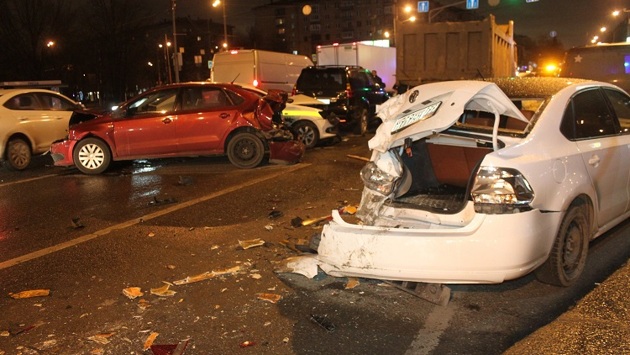 На Профсоюзной улице, возле дома 21, произошло крупное ДТП с участием грузовика и девяти легковых автомобилей. Об этом сообщает Агентство городских новостей «Москва» со ссылкой на источник в экстренных службах города. «В районе дома 21 по улице Профсоюзная самосвал совершил столкновение с остановившимися на светофоре автомобилями — четырьмя Volkswagen (из них одна машина такси), Lexus, Toyota Camry, Kia Rio и двумя такси — Hyundai Solaris», — сказал собеседника агентства. Источник отметил, что в данный момент устанавливаются обстоятельства случившегося. Фигурируют две версии аварии — отказ тормозов и ошибка водителя. Пострадавших в результате ДТП, по данным агентства, нет.