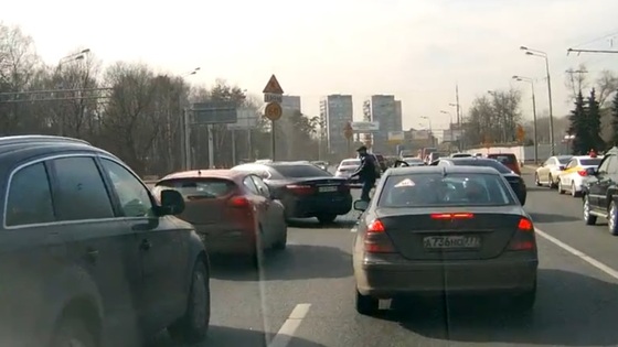 В сети размещены кадры серьезной аварии, произошедшей в четверг, 12 апреля, на Волоколамском шоссе в Москве. На записи видно, что водители двух легковых автомобилей, что-то не поделившие на дороге, решили выяснить отношения. По утверждению автора ролика, мужчина, находившийся за рулем Mercedes, угрожал "предметом, похожим на пистолет", человеку, управлявшему Lexus. Последний решил сбежать от оппонента и выехал на полосу встречного движения, где в него врезался ничего не подозревающий автомобилист, просто не успевший отреагировать на внезапное появление нарушителя. "Пострадали люди во встречном авто, в том числе маленький ребенок — детское автокресло спасло малыша", — рассказал водитель транспортного средства, из которого велась съемка.
