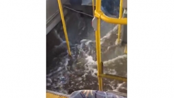 Сегодня тюменцы опубликовали в соцсетях видео, на котором автобус заливает водой. Пассажиры были вынуждены забираться на кресла, чтобы не замочить ноги. Сообщалось, что ЧП произошло на улице Созидателей. Как удалось уточнить ИА «Север-Пресс», улицу затопило растаявшим снегом. Были скорректированы маршруты рейсового автобусного сообщения, а коммунальные организации уже приступили к откачиванию воды.