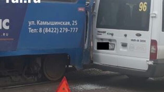 В Ульяновске трамвай врезался в маршрутку, движение встало