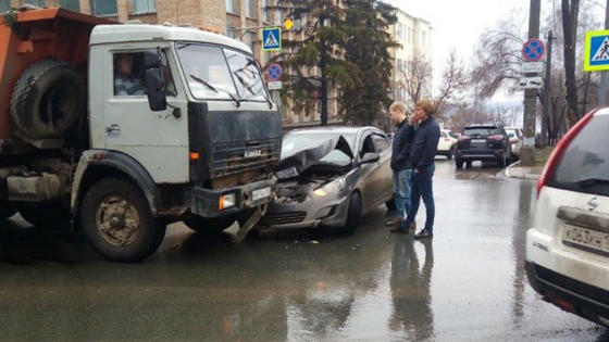 КАМАЗ протаранил легковушку на пересечении Молодогвардейской и Студенческого переулка