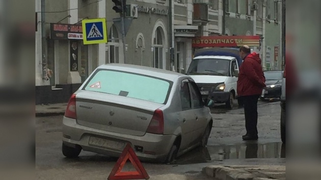 На пересечении Физкультурной и Краснодонской автомобиль провалился колесом под асфальт