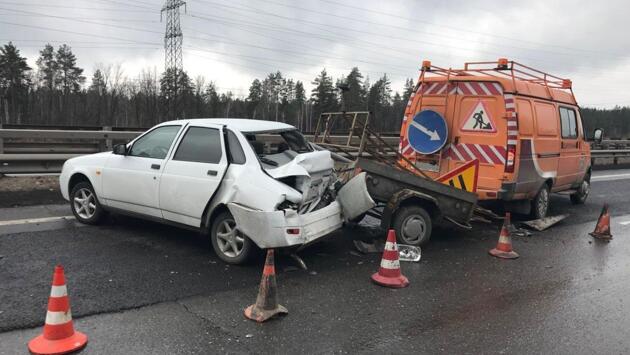 В результате аварии пострадала 54-летняя женщина. Авария из трех автомобилей произошла на трассе М5 "Урал" в направлении Самары. По информации ГУ МВД России по Самарской области, 44-летний рулевой Volvo нарушил дистанцию и столкнулся с легковушкой ВАЗ. От удара седан отлетел в стоящую "Газель" - машину дорожной службы. В момент столкновения травмы получила 54-летняя пассажирка ВАЗа. Медики направили женщину на амбулаторное лечение. По факту ДТП проводится проверка. Фото: ГУ МВД России по Самарской области