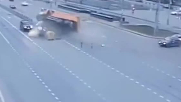 КамАЗ в Москве раздавил две легковушки, есть жертвы
