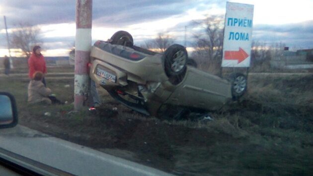 Необычное дорожно-транспортное происшествие произошло в Балаково Саратовской области. Вечером 22 апреля при въезде в город со стороны дач «Приморье» с трассы на обочину вылетел автомобиль с пассажирами. В кювете машина перевернулась на крышу и так и осталась до прибытия ГИБДД в положении колесами вверх. Примечательно, что покореженный в результате происшествия автомобиль упал рядом с указателем «Приема лома» рядом с элеватором вблизи заправки. «Удачно перевернулись! Сразу в прием лома», — иронизировали пользователи в группе «Типичный Балаково» в социальной сети «ВКонтакте». Фото: Андрей Гвоздев