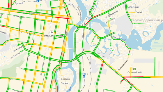 По данным сервиса Яндекс.Карты, в утренние часы на дорогах Пенза серьезно затруднено дорожное движение. На въезде в город затор образовался на Стрельбищенской улице при выезде на улицу Измайлова – средняя скорость движения транспортного потока не превышает 7 км/ч. Стоят в пробке автомобилисты на пересечении улицы Антонова и улицы Измайлова. Не удастся быстро проехать по Транспортной улице при выезде на Бакунинский мост. Затор образовался в районе Центрального рынка на пересечении улицы Суворова и улицы Урицкого – средняя скорость движения на этом участке составляет 10 км/ч. Также испытывают трудности автомобилисты на пересечении улицы Суворова с Толстовским путепроводом. Небольшой затор образовался на пересечении улицы Карпинского и проспекта Победы. Из-за дорожно-транспортного происшествия пробка скопилась на улице Баумана. Инцидент произошел в районе перекрестка с Отдельной улицей. Серьезный затор образовался на пересечении улицы Воронова и Вишневой улицы. Средняя скорость движения на этом участке составляет 7-10 км/ч. Стоят в пробке автомобилисты на Красной улице при движении в сторону улицы Лермонтова – по возможности ищите пути объезда.