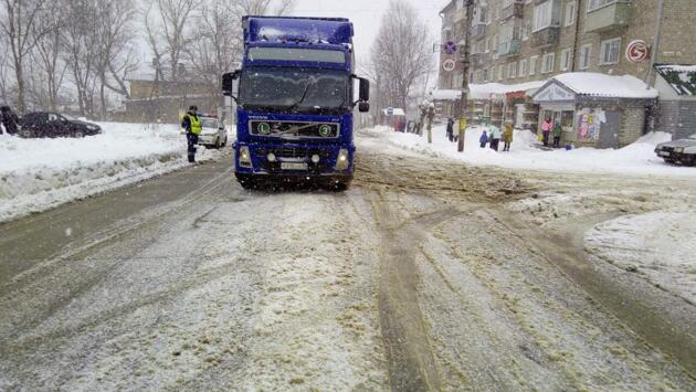 Сегодня, 23 апреля, в условиях сильного снегопада кировские автоинспекторы оказывают помощь водителям, попавшим в затруднительную ситуацию. Как сообщает пресс-служба Управления ГИБДД по Кировской области, из-за сильного снегопада автоинспекторы несут службу в усиленном режиме, оказывая помощь водителям и пешеходам. За сутки сотрудники ГИБДД вытащили из кюветов более 30 транспортных средств. Особенно сложная ситуация в Кирове: сотрудники ДПС помогли десяткам водителей большегрузов преодолеть подъемы, регулировали движение на основных перекрестках города, распределяли транспортные потоки в условиях затора. В поселке Юрья автоинспекторы помогли сдвинуть с места застрявшую на перекрестке «Газель», а в Яранске вызвали спецтехнику, чтобы вытащить из кювета легковой автомобиль с пассажирами. В Кирово-Чепецком и Котельничском районах полицейские формировали колонны с транспортными средствами в условиях ограниченной видимости, предупреждали водителей об опасности одиночных поездок. Если вы попали в затруднительную ситуацию и вам нужна помощь, можете обратиться к ближайшему наряду ДПС или позвонить в дежурную часть ГИБДД по телефону 58-88-88 либо по телефону единой службы спасения 112. Отметим, по данным на 13-30 23 апреля, на дорогах Кирова и области произошло 41 ДТП, пострадал один человек. По прогнозам, снегопад продолжится до конца сегодняшнего дня. Фото – Пресс-служба УГИБДД по Кировской области
