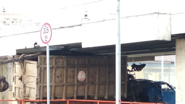 Под путеводом на набережной Волгограда вновь застрял грузовик