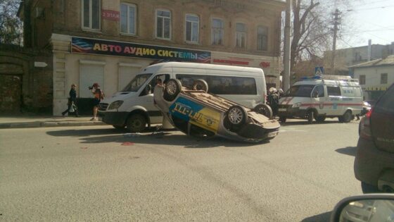 В результате ДТП есть пострадавшие. Инцидент произошел утром в Саратове на пересечении улиц Кутякова и Чапаева. Здесь не поделили дорогу маршрутный автобус Volkswagen и Lada Granta. Видимо, не справившись с управлением, автомобилист допустил опрокидывание транспортного средства. Очевидцы происшествия утверждают, что такси врезалось в красную иномарку, после чего опрокинулось. Примечательно, что на легковом автомобиле имелись знаки такси. Однако, как удалось узнать интернет-изданию «Новости Саратова», к такси автомобиль юридически не имеет отношения: данная фирма оказывает лишь диспетчерские услуги. В результате происшествия пострадали 2 человека: это водитель самого «такси» и пассажирка маршрутки, в которую врезалась машина, занимающаяся частным извозом. Женщина из автобуса порезалась осколками битого стекла. Об этом интернет-изданию «Новости Саратова» сообщили в областной службе спасения. Фото: соцсети, Новости Саратова