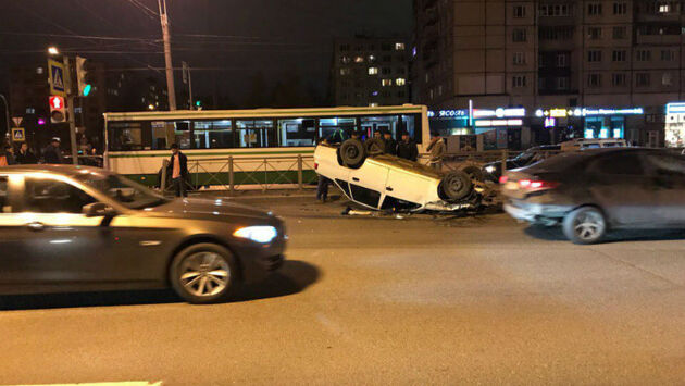 На пересечении проспекта Большевиков и улицы Подвойского в Невском районе Петербурга столкнулись три автомобиля.