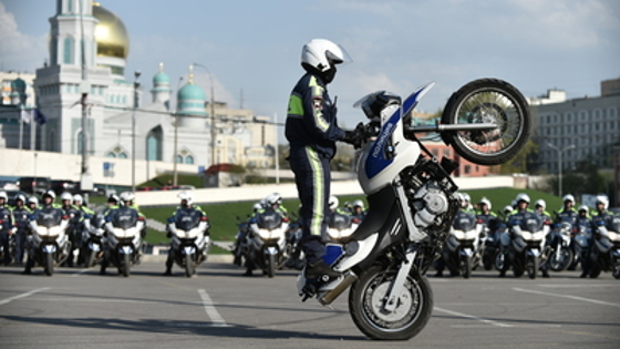 В Москве провели строевой смотр мототехники и личного состава дорожно-патрульной службы столичной Госавтоинспекции, мероприятие приурочено к открытию мотосезона-2018, передает корреспондент РИАМО. После смотра прошел парад, на котором сотрудники московской Госавтоинспекции показали свои навыки в владении мототехникой. На параде присутствовал начальник управления ГИБДД ГУ МВД России по Москве Виктор Коваленко «Сегодня мы завершаем этап подготовки после осенне-зимнего периода и официально открываем мотосезон сотрудников Госавтоинспекции. Ежедневно на улицы города будут выходить парные экипажи наших мотоциклистов. Хотелось бы, чтобы во время несения службы, полученные вами навыки были использованы на практике», - сказал Коваленко. Также сотрудников ГИБДД с открытием очередного мотосезона поздравил заместитель мэра Москвы, руководитель столичного департамента транспорта и развития дорожно-транспортной инфраструктуры Максим Ликсутов. «Позвольте от лица мэра и правительства Москвы поздравить вас с открытием мотосезона. Хочу сказать слова благодарности за ту работу, ту службу, которую вы несете на благо города и москвичей. По уровню аварийности, по скорости прибытия на ДТП Москва является безусловным лидером среди городов России», - сказал Ликсутов.