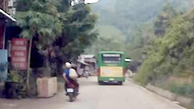 Однако этот водитель из Вьетнама почему-то решил, что стоит обогнать автобус в горку при нулевой видимости обстановки впереди. И поплатился: навстречу ехал другой байкер, в результате чего два мопеда столкнулись, а водители с пассажирами буквально раскатились по дороге. К счастью, движение было неплотным и упавшие с мопеда люди не попали под автобус. Судя по видео, погибших нет, однако один из водителей и женщина явно получили сотрясения и ушибы.