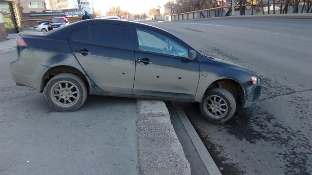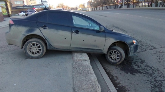 В столице республики произошло необычное ДТП. На улице Сочинской, недалеко от светофора и начала улицы Софьи Перовской, над проезжей частью зависла иномарка Mitsubishi Lancer. Оказалось, что незадачливый водитель попал впросак еще ночью. Он хотел съехать на дорогу, но не заметил, что бордюр в этом месте слишком высокий. — Я работаю в соседнем здании. Не в первый раз автомобили попадают здесь в неприятную историю. Сверху действительно не понятно, на сколько опасно препятствие, — рассказал очевидец Алексей. По словам мужчины, автомобиль простоял в подвешенном состоянии до самого утра. А после на выручку приехали родственники парня, чтобы наконец вытащить иномарку на дорогу.