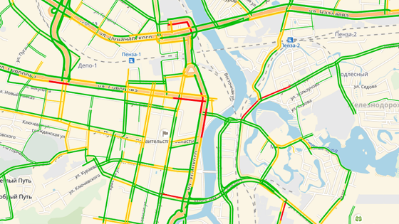 По данным сервиса Яндекс.Карты, в утренние часы на дорогах Пензы серьезно затруднено дорожное движение. На въезде в город пробка скопилась на пересечении улицы Измайлова и улицы Антонова – средняя скорость движения транспортного потока на этом участке не превышает 7 км/ч. Затруднено движение на Транспортной улице и улице Свободы при выезде на Бакунинский мост. Также стоят в пробке автомобилисты на Стрельбищенской улице – по возможности ищите пути объезда. В центре города затор образовался на пересечении улицы Суворова и Толстовского путепровода. Также не удастся быстро проехать в районе Центрального рынка – средняя скорость движения на пересечении улицы Суворова и улицы Урицкого составляет 7-10 км/ч. Большая пробка скопилась на улице Терновского в направлении центра города. Затор начинается от пересечения с Ростовской улицей. Также не удастся быстро проехать по Сухумской улице – средняя скорость движения автотранспорта в районе пересечения с улицей Терновского составляет 5 км/ч. Дорожно-транспортное происшествие привело к затруднению движения на улице Гагарина в направлении центра – по возможности ищите пути объезда.