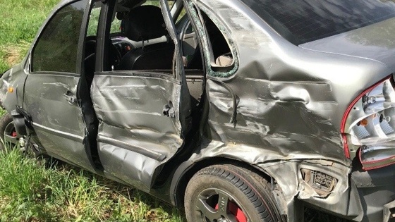 «Лада» столкнулась с КАМАЗом: легковушка снесла дорожные знаки