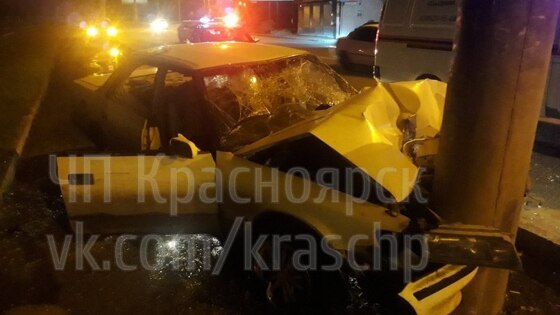 Два человека отправились в больницу в результате ночного ДТП на улице Тельмана в Красноярске. Легковушка на скорости протаранила столб. Снимки с места происшествия опубликовали в паблике "ЧП Красноярск" в соцсети "ВКонтакте". Истинные причины и подробности аварии пока не известны, однако очевидцы утверждают, что водитель и пассажир легковушки были пьяны. Пожилой мужчина погиб в результате столкновения автопоезда и микроавтобуса под Иркутском. Его жена и маленькая внучка госпитализированы.