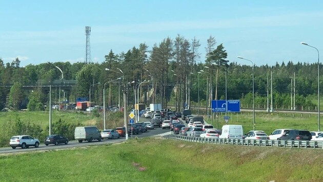 Люди несколько часов пытаются выехать из Петербурга из-за огромных пробок