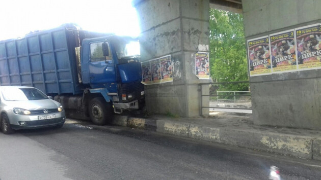 Грузовик въехал в опору моста на улице Лыжной в Петрозаводске (видео)
