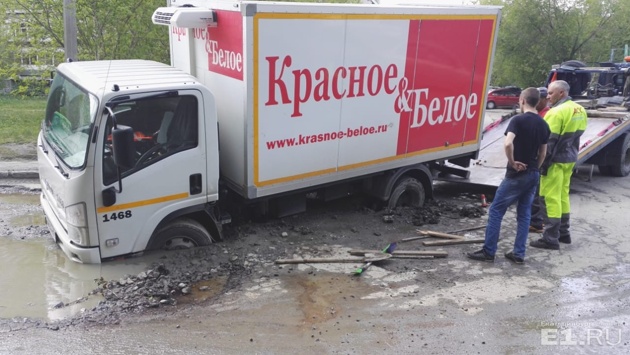 На ЖБИ во дворе домов № 14 и 16 на улице Сыромолотова под землю ушёл грузовик алкомаркета. Как рассказала очевидец Марина, машина провалилась утром, но её до сих пор не могут вытащить. — Его несколько часов не могут вытащить, здесь нужен кран какой-то. Приезжал эвакуатор, но он не смог вытащить, — рассказала Марина. — Там дорогу никто не делает, а молодого человека — водителя очень жалко, он там с самого утра, а ему никто помочь не может. Ему принесли чай в термосе. У машины уже масло потекло. Марина рассказала, что это уже не первая машина, которая проваливается на этом участке. После дождя ямы заполняются водой и не видно, насколько она глубокая. Ещё одна жительница ЖБИ — Анна также пожаловалась, что ямы во дворе никто не ремонтирует. «Уже около 10 лет там огромные ямы, которые не чинят, — рассказал ещё один очевидец. — Местные знают их и объезжают. А водитель грузовика не знал, какой глубины там провал. Его скрыла вода после вчерашнего дождя. Писали и в прокуратуру, и в ДПС, и в мэрию по поводу этой дороги. Все перекладывают ответственность друг на друга». Дозвониться до администрации Кировского района и взять у них комментарий пока не получилось.