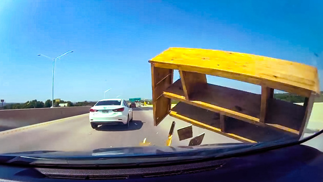 Самое необычное столкновение на дороге произошло у водителя Toyota Camry в США, когда он ехал за городом по трёхполосному шоссе. Автолюбитель неспешно рулил в среднем ряду, слушая музыку и думая о чем-то своем, когда впереди внезапно резко затормозили машины. Выругавшись, водитель дал по тормозам, однако оказалось, что другие автомобилисты не просто тормозили, а еще и объезжали внезапно возникшее препятствие: шкаф! Откуда он взялся - непонятно, но, очевидно, свалился с одного из авто и остался стоять, будто так и должно быть. Увы, объехать мебель автор видео не успел и разнес его в щепки, после чего поехал дальше. Ну, а действительно, что тут еще сделаешь? Надо продолжать жить.