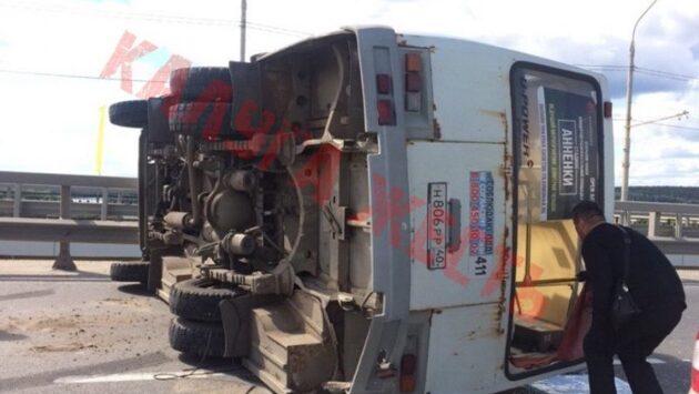 Днем 7 июня на мосту через Оку в Калуге перевернулся ПАЗ, ехавший в сторону улицы Гагарина. Как сообщили в пресс-службе Главного управления МЧС России по Калужской области, авария произошла в 14.45. Ее обстоятельства сейчас уточняются. По предварительным данным, люди не пострадали, но движение по мосту в сторону центра города было серьезно затруднено. Фото группы "Калуга Жесть" "ВКонтакте"Встало в пробке и Тульское шоссе вплоть до улицы Генерала Попова. Пробка начала рассасываться лишь к 15.30.