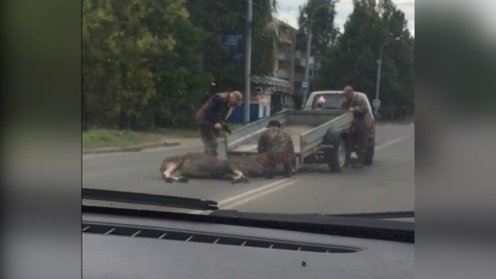 Он был ещё живой: в Рыбинске у автобусной остановки сбили лося