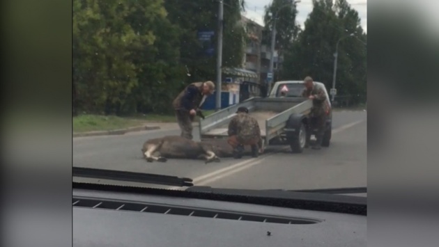 Рыбинск на этих выходных заполонили лоси. Одни переплывают Волгу, попадая на камеры местных жителей. Для животного на улице Черепанова выход в город стал трагичным. Один сохатый переплывал Волгу Лося сбили прямо у автобусной остановки. — Я проезжала мимо, когда его сбили. Он был живой и пытался встать, — рассказала местная жительница Елена Марущак. Судя по виду, это был молодой лось. Чуть позже за ним приехала «Нива» с прицепом, на который трое мужчин погрузили труп животного. // В Ярославле в лося врезалась маршрутка с пассажирами.