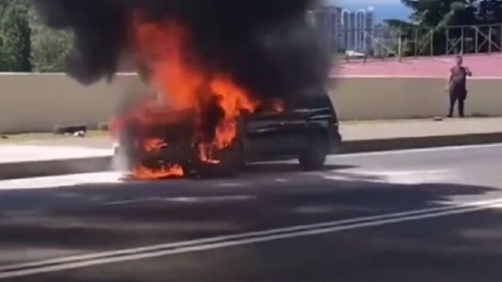 В Сочи на улице Транспортной сгорел автомобиль Subaru. Видео