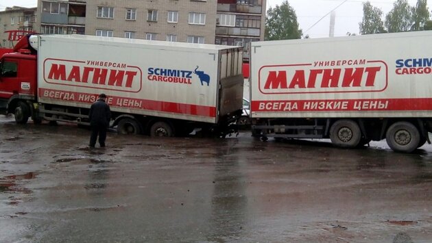 В Екатеринбурге у магазина «Пятёрочка», который расположен на улице Баумана, под колёсами грузовика провалился асфальт. Тяжёлая машина накренилась и застряла в яме задним мостом: — Там раньше не было ямы, и во двор всегда машины заезжали нормально, — рассказал местный житель Евгений. — Видимо, дорога провалилась под весом фуры. Попав в асфальтовую ловушку, водитель пытался вытащить свой грузовик. По словам очевидцев, мужчина долго возился со сцепкой, но никак не мог отцепить тяжёлый прицеп. В начале месяца аналогичное дорожное ЧП произошло на ЖБИ. 5 июня на улице Сыромолотова под землю ушёл грузовик алкомаркета. Машину безуспешно пытались вытащить несколько часов. Если вы стали свидетелем происшествия, сделали фото и видео или располагаете информацией о пострадавших, пишите нам на электронную почту news@corp.e1.ru. Также можно воспользоваться WhatsApp и Viber — их номер +7 909 704 57 70.