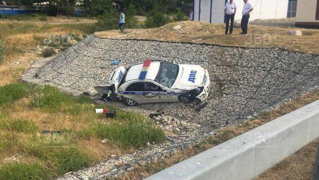 Автомобиль ДПС улетел в кювет после серьезного столкновения в Сочи