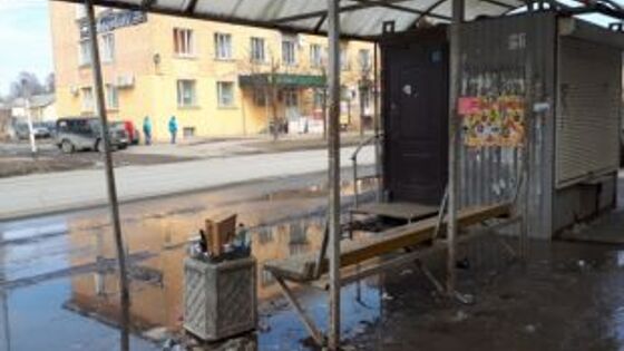Автомобиль врезался в остановку на Петергофском шоссе