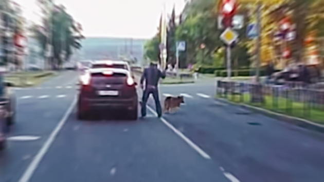 А у нас второе за последние дни видео из Карелии, где, оказывается, не так скучно, как казалось. В центре Петрозаводска неадекватный мужчина с собакой подходил к водителям, остановившимся на перекрестке, и после короткой беседы нападал на них. О чем они говорили - увы, непонятно. Однако забавно, что если первый водитель почти сразу уехал от агрессивного хулигана, то второй что-то дал ему - вероятно, деньги. Но взятка не помогла, и мужчина вновь напала на благодетеля. К счастью, вокруг было много людей, праздновавших победу России над Испанией. Они пришли на помощь и безумца повязали. Вот только во всей этой истории жалко собаку - в ее планы наверняка не входило устраивать беспорядки в Петрозаводске, но ее никто не спрашивал.