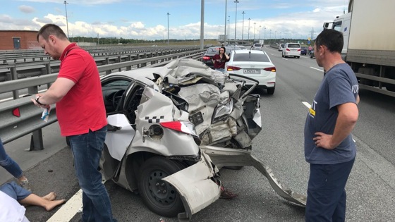 На 59 км внешнего кольца КАД в легковой автомобиль въехал грузовик. По предварительной информации очевидцев, судя по знакам на легковом автомобиле "Хендай", машина принадлежала к какой-то службе такси. Сообщается о двоих пострадавших женщинах. Одна из них в тяжелом состоянии. Очевидцы также сообщают в социальных сетях, что водитель "Хендай" резко ударил по тормозам. В результате резкого торможение в него въехал большегруз.