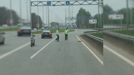 Очевидец снял на видео как пермские сотрудники дорожно-патрульной службы остановили движение, чтобы перевести через трассу выводок утят. Пока один полицейский, остановивший машины, следил за ситуацией на дороге, второй осторожно проводил утят до обочины. Движение возобновилось, когда стражи органов правопорядка убедились, что пернатые находятся в безопасности.