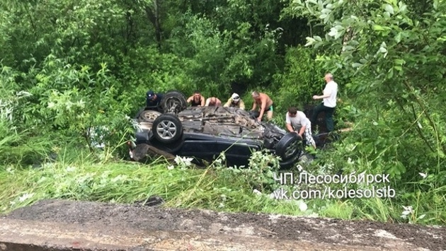 Иномарка столкнулась с фурой и улетела в кювет в Лесосибирске. Погибла женщина