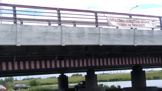 В Санкт‐Петербурге украли предупреждающий баннер возле так называемого «моста глупости» – моста, под которым застряло уже более 150 «ГАЗелей». Иформация об этом появилась на Telegram‐канале «Мост глупости live!». «Кто-то спер баннер, подаренный на 150-Газелие моста», — гласит сообщение. Источник фото: Telegram «Мост глупости live!» Авторы канала также разместили информацию о том, что пришла в негодность и габаритная балка с «висюльками»-ограничителями. Ее установили всего месяц назад в честь 150-го застрявшего грузовика. «Мост глупости» стал известен в социальных сетях благодаря большому количеству аварий под ним. Власти города разработали комплекс мер, направленных на акцентирование внимания водителей на опасном месте с низким путепроводом. Однако, как показала практика, далеко не все водители грузовиков готовы прислушиваться к предостережениям и предпочитают проверить высоту моста самостоятельно. Вчера, 3 июля, возле «моста глупости» появился плакат с надписью «Проверь габариты фургона!». На плакате размещена фотография одной из «ГАЗелей», которая не смогла проехать под мостом.